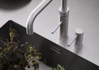 Flex vandhanen fås i krom, rustfrit stål, og sort overflade. Igen kan du aftappe varmt, koldt og kogende vand, og selvfølgelig tilkøbe CUBE-enheden, hvis det ønskes. Men en Quooker Flex skiller sig ud på et specifikt punkt: Flex-hanen har en fleksibel udtrækningsslange, som er enormt praktisk, når du skal ud i alle hjørner af en stor vask. Vandhanen er ligeså vel børnesikret som de andre, og findes i et enkelt og tidløst design. Med en Quooker får du altså en smuk, smart og enormt praktisk vandhane – det bliver ikke mere fordelagtigt!