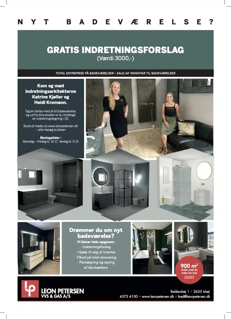 *VVS, murer, elektriker, tømrer og maler indgår alle i renovering af badeværelser – hos Leon Petersen får du ingen overraskelser. Den pris vi aftaler på mødet, er det det kommer til at koste.